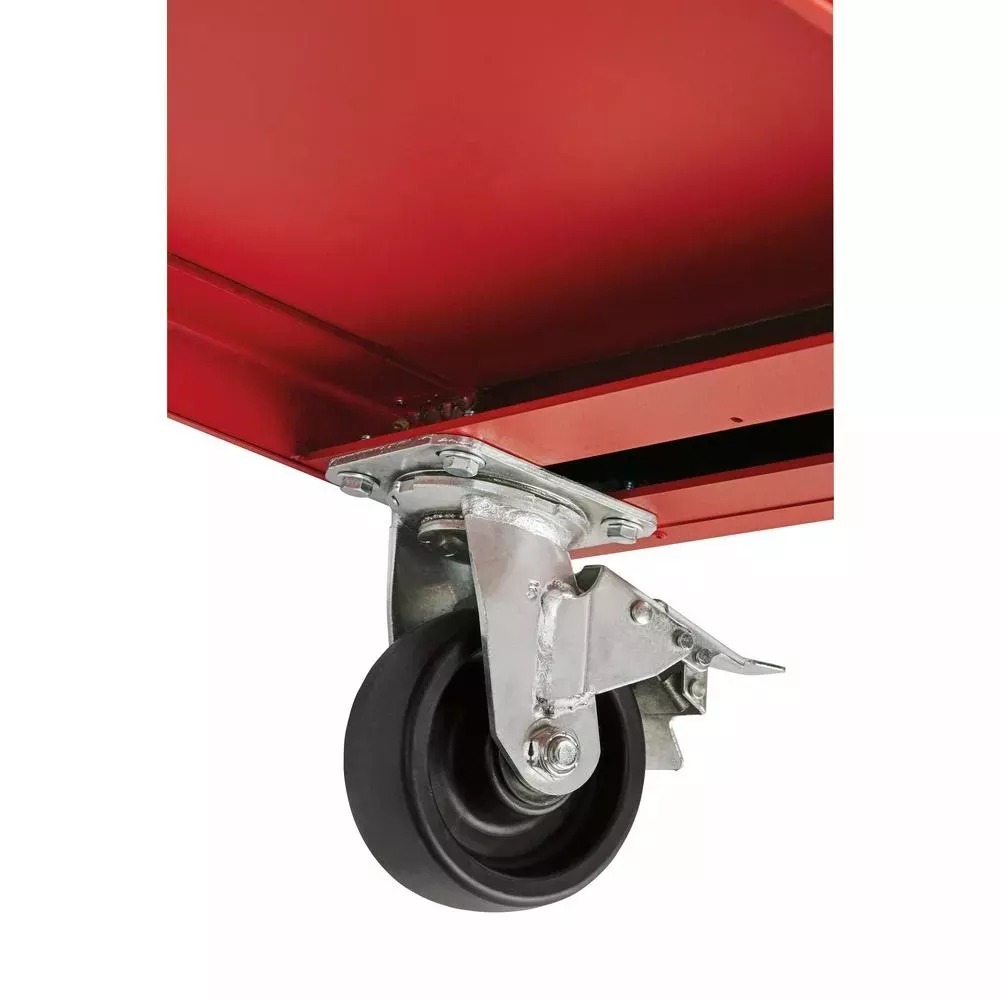Products DescriptionKeep your workshop clean with the Milwaukee 46 in. 16-Drawer Tool Chest and Cabinet Set in Red. Designed for both hobbyists and professional craftsmen it is built with a heavy-duty 20-Gauge all-welded steel construction to offer increased durability. This tool storage system has a textured powder coat paint finish to increase resistance to corrosion weather and staining. It is designed with a lid that features gas struts for improved safety when opening and closing. It has a shelf and a tray allowing for complete customization of your garage organization system. This Milwaukee tool cabinet is designed with 16-drawers 7 small 6 medium and 3 large and features a total holding capacity of 27223 cu. in. providing the perfect storage solution for all of your equipment. Excellent for smooth operation it is made with ball bearing slides that can hold up to 100 lbs. to accommodate heavy loads. This tool storage system comes with a computer drawer which provides a secure place to hold your laptop while you are working and slides away to safely store it while not in use. Ideal for keeping your tools secure it is made with a 3-barrel key locking system so it will offer you peace of mind. This Milwaukee tool cabinet utilizes polypropylene fixed and swivel casters that can support up to 1800 lbs. and has 3 rounded tubular handles making it easy to maneuver around.