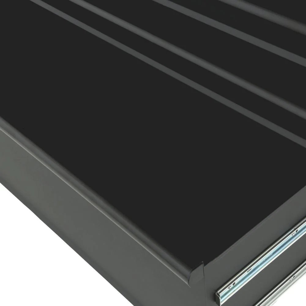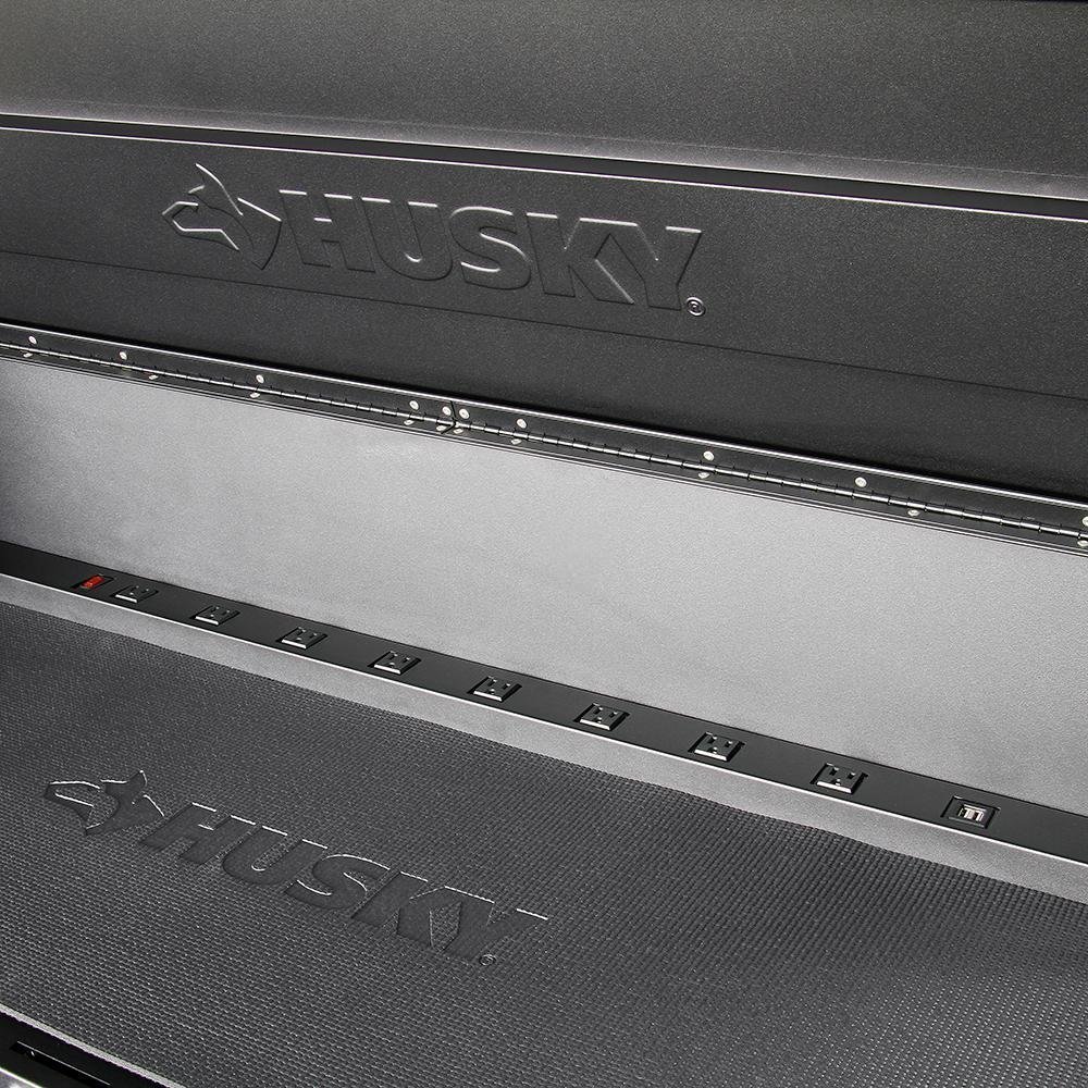 The Husky 56 in. W 22 in. D with 23 drawers Tool Chest and Cabinet Set is a heavy duty 18-Gauge steel tool storage unit that is rated for 3000 lb. loading capacity. This tool chest and cabinet set with 23 drawers provide 42930 cu. in. of storage. The heavy duty drawers are rated to 120 lbs. each. The extra deep bottom drawers have double 120 lb. glides. The full length drawer provides convenient storage for longer items and the small drawers keep smaller items in a confined space. Drawer liners are included to protect and keep your tools in place. The built in full length power strip includes 8 outlets and 2 USB ports making it easy to keep all of your tools charged. Also included is a rechargeable magnetic LED work light. This light charges via a USB connection has 3 light modes a recessed folding hook and produces up to 360 Lumens. For added security both the chest and cabinet are fitted with a barrel key lock system. This toolbox weighs in at 542 lbs. so the 5 in. x 2 in. heavy duty industrial grade glides with easy locking pedals are needed to smoothly role this unit around your work area.