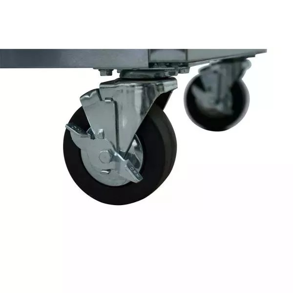 - 5 in. x 2 in. casters; 2 swivel and 4 swivel casters with brake