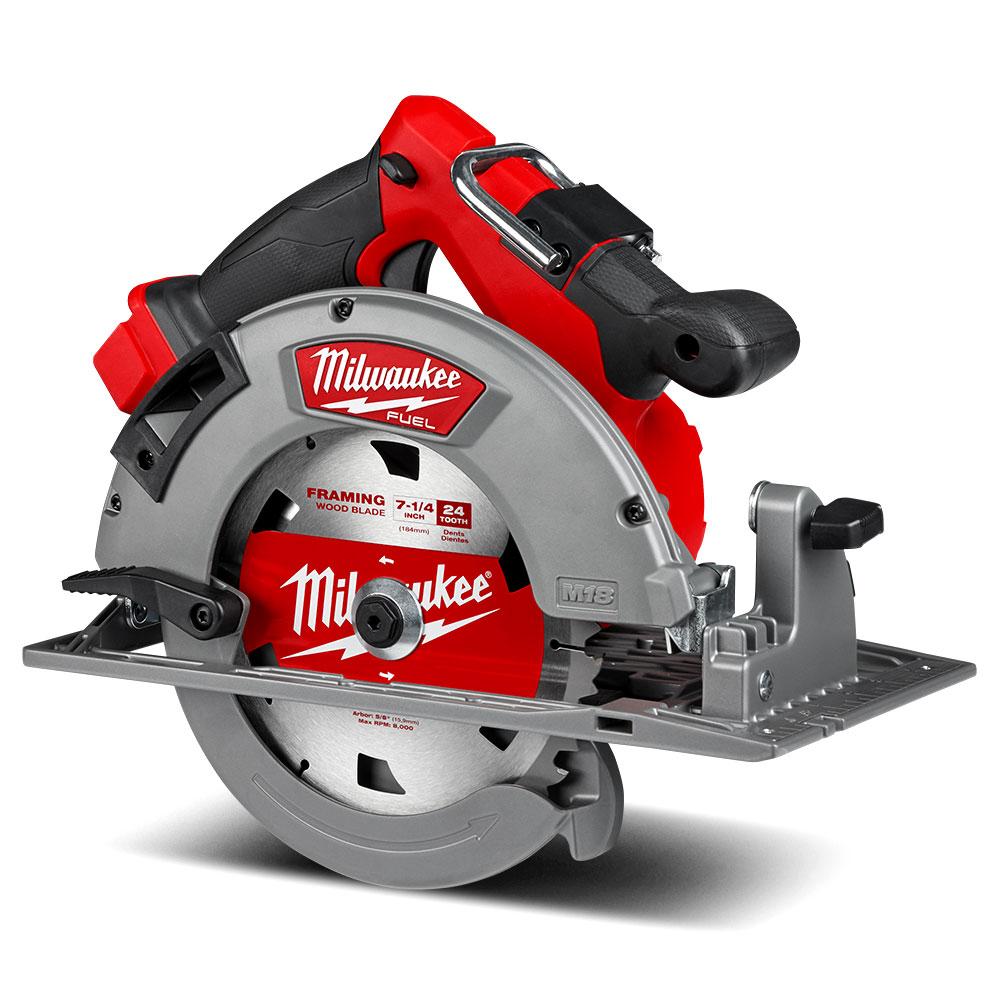 Designed for the carpenter, remodeler and general contractor, the M18 FUEL 184mm Circular Saw, M18FCS66-0, from Milwaukee generates corded power, cuts faster and gives users up to 750 cuts in 2x4 per charge. The POWERSTATE Brushless Motor provides 5800rpm and higher speeds under load for corded cutting performance. All magnesium guards and shoe delivers extreme durability for jobsite conditions. A built-in rafter hook offers quick and easy storage and an electric brake stops the blade quickly after cuts are complete for maximum productivity.